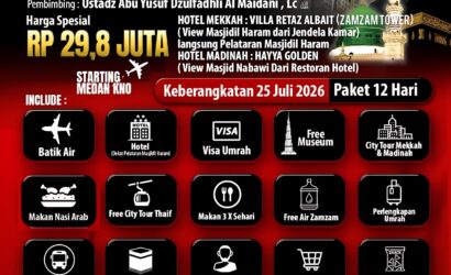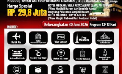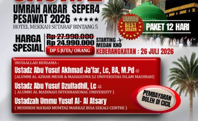 Percayakan Umrah Bersama PT.Al Kabah Wisata Internasional semoga menjadi pilihan yang terbaik, dengan Asatidz pembimbing yang amanah, berpengalaman dan mumpuni dibidangnya serta yang terpenting adalah tata cara ibadah Umrah yang sesuai dengan Al Qur’an & tuntunan Rasulullah Shallallahu ‘Alaihi wa Sallam.