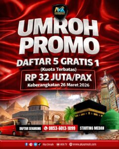 Harga hemat, layanan istimewa! Umrah jadi lebih tenang bersama travel terpercaya. Ayo wujudkan impian suci Anda bersama AKA Travel dalam programย PROMO UMRAH FREE 1